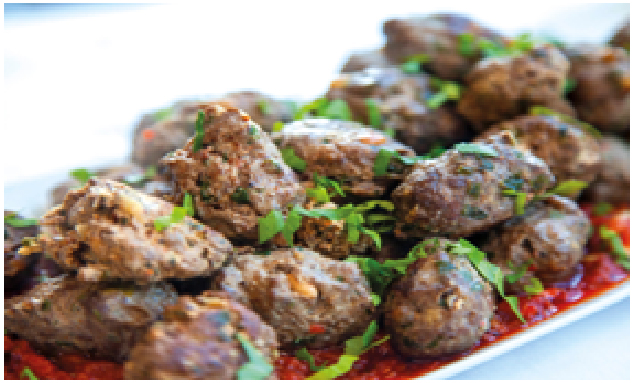 Ground beef and onion-filled dumpling, topped with fresh homemade yogurt, meat sauce & dried mint.