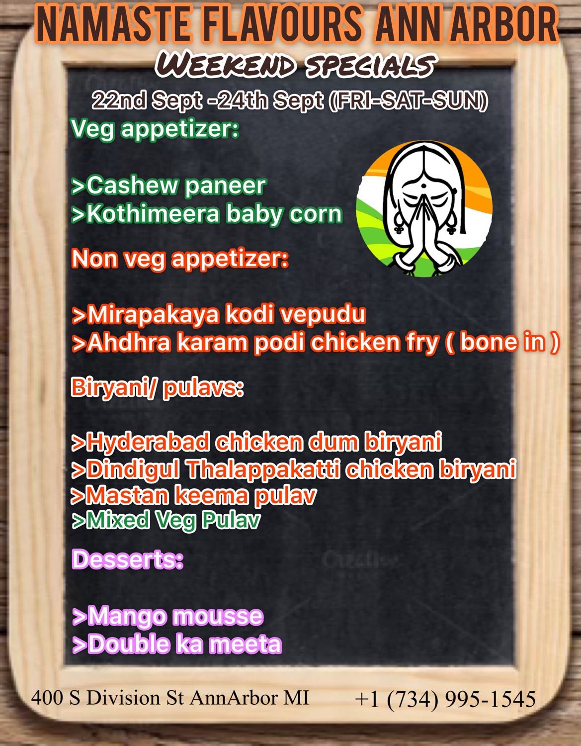 +1 734-995-1545 namasteflavourarbor@gmail.com Open all 7 days in a week