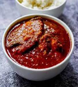 Tilapia Fish fillets marinated with freshly ground spices and cooked with onions and tomato gravy.