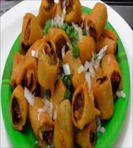 Crispy pastry rolls stuffed with seasoned julienned veggies, served with ketchup and chutney.