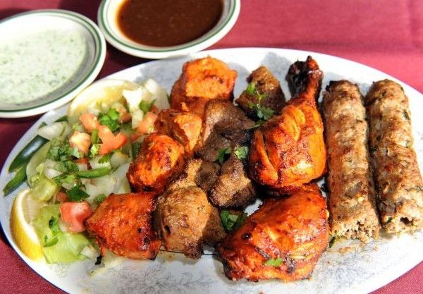 Lamb boti, beef kebab, chicken tikka, half chicken tandoori