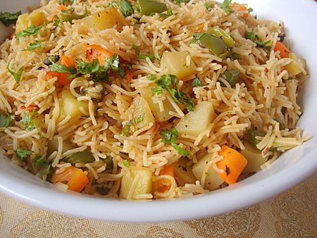Saffron-infused, almonds and balanced with a hint of rose water for a paella like dish, comes with raita.