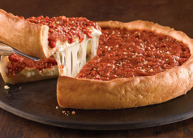 A Chicago pizza is prepared using several different styles developed in Chicago. It is also referred to as a deep-dish pizza because of its cooking style.