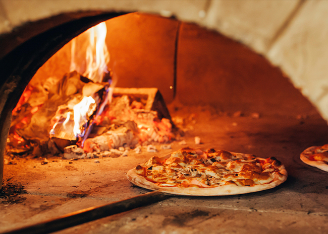 As the name suggests, a brick oven pizza is the one that's cooked in a brick oven instead of a conventional oven powered by electricity.