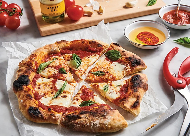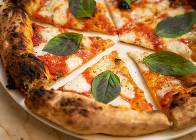 An Italian pizza refers to the one that's cooked in a very hot oven and features a thin crust and simple flavors.
