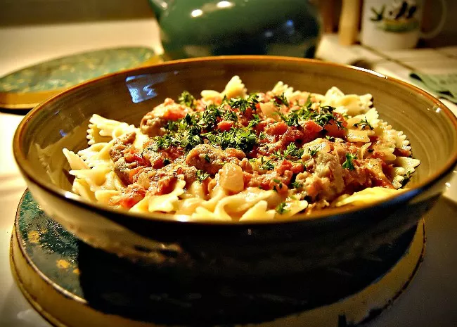 Use bow tie pasta to dress up any dish that calls for small pasta shapes, such as penne or shells. Also known as farfalle.